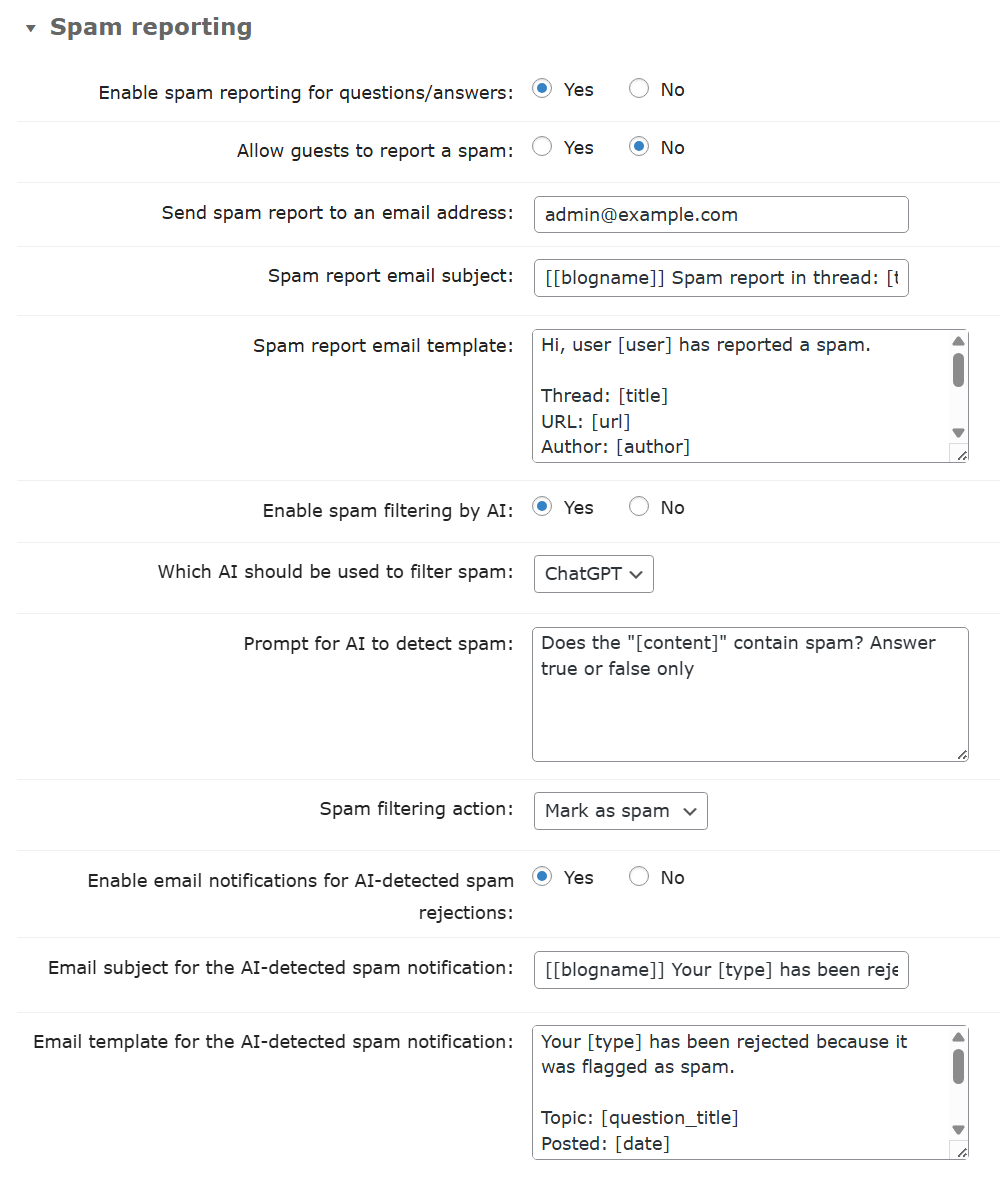 AI also monitors and filters inappropriate content, focusing on spam and offensive language. Administrators can set rules to ensure discussions remain respectful and on-topic across questions and answers.