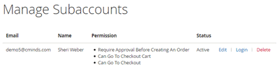 7. View Account Orders – Define if the sub account can view all account orders or only their sub account orders.