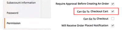 6. Access Cart or Checkout – Define if the sub account can access cart or checkout.
