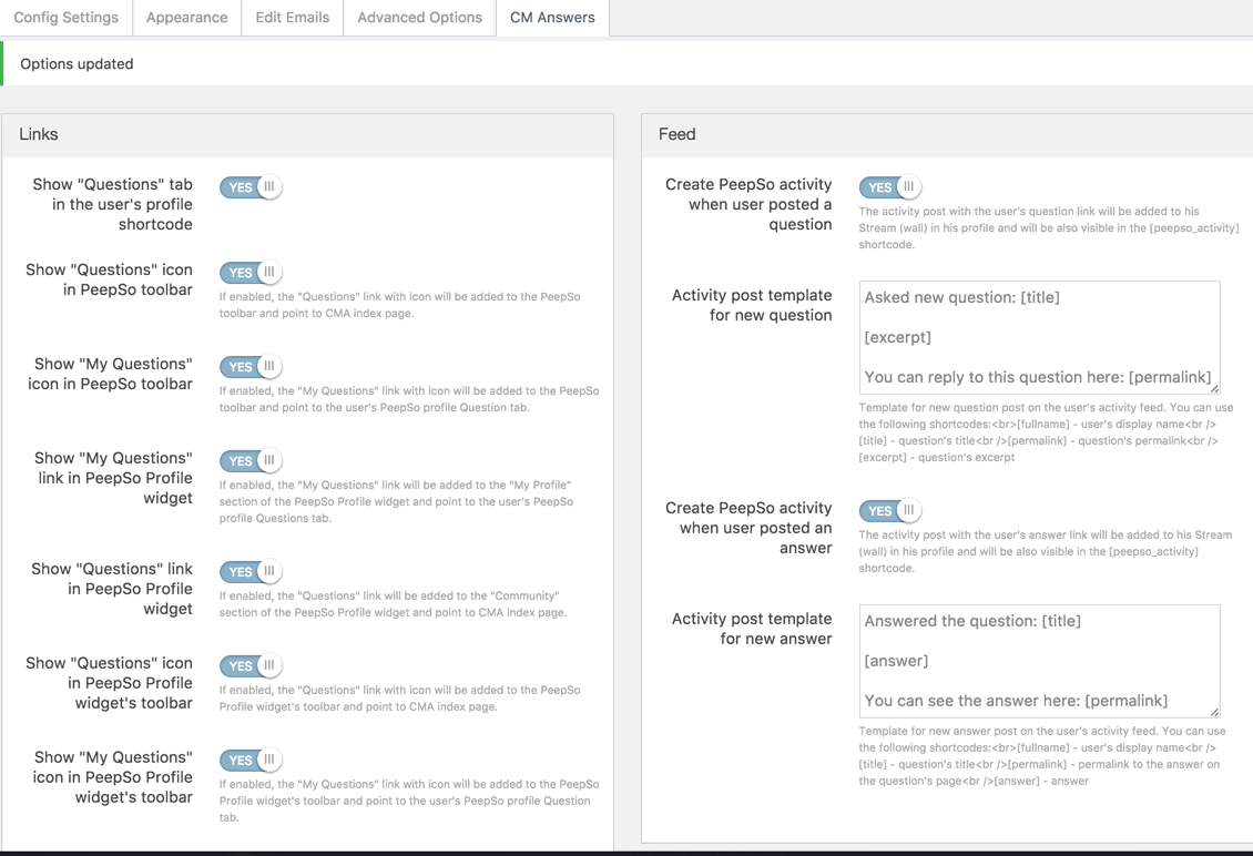 Yes. This is configurable through the PeepSo Configuration settings (PeepSo → Configuration → CM Answers) within the section labeled Feed.