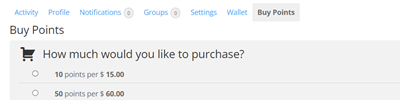 Can I allow my BuddyPress users to buy points for cash through BuddyPress?